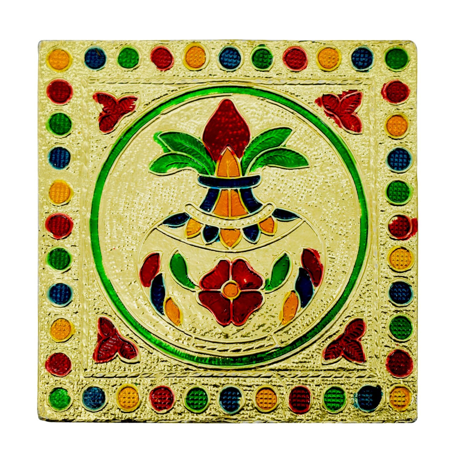 Fancy Wooden Designer BajotWe brings to you Stylish and extravagant looking rectangle patla/ stand for Royal Weddings & Pujas. A very beautiful and unique style of minakari patla for increasing the beauty of your home. Made of wood the minakari design work gives it a different look. It can be used as a corner piece or to place god idols or to sit while performing Hindu pooja. Easily eye catching and admirable by everyone. Each piece is handcrafted and there may be a variation in colour and designFeatures :