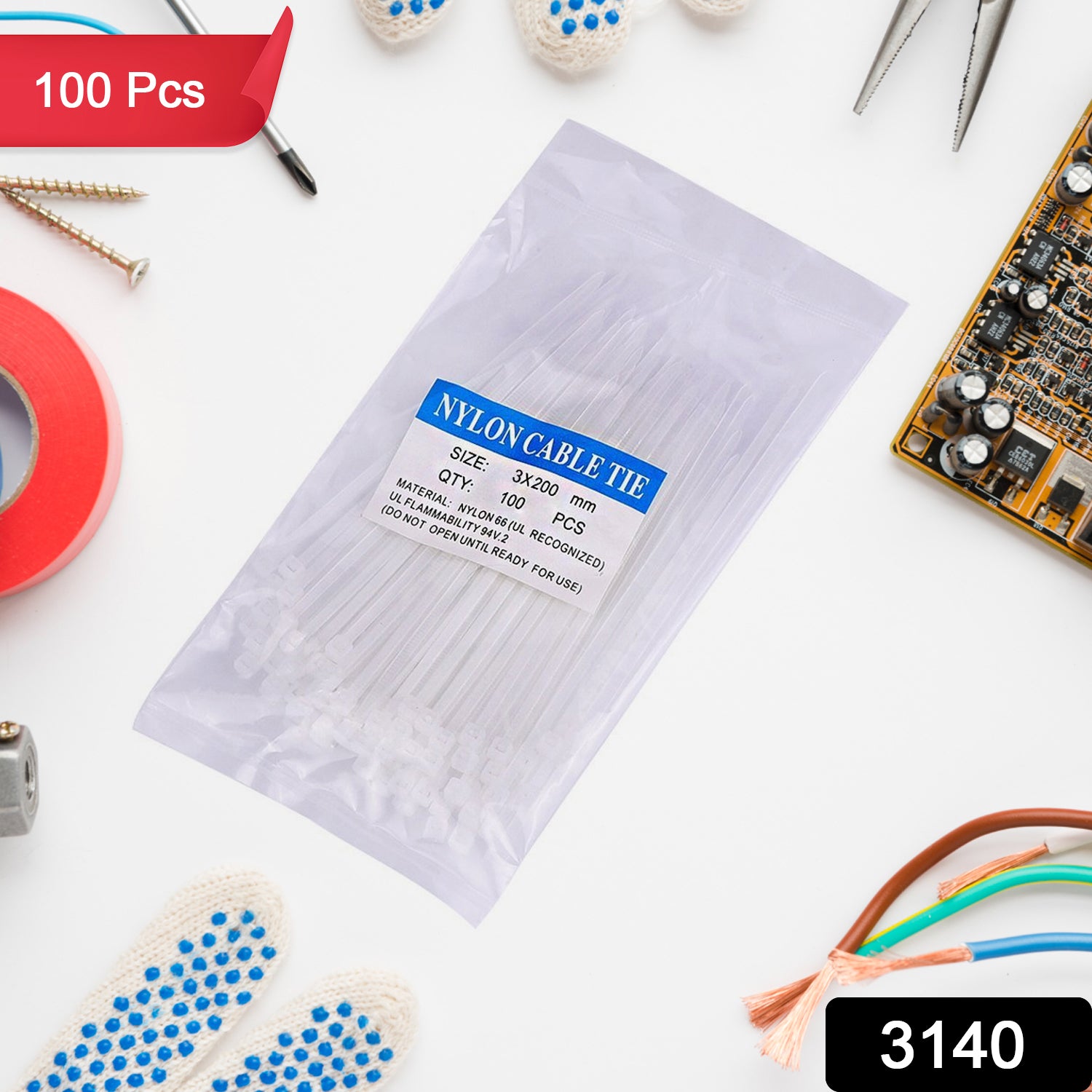3140 8Inch Nylon Self Locking Cable Ties, Heavy Duty Strong Zip Wire Tie. Pack of 100 - Black.