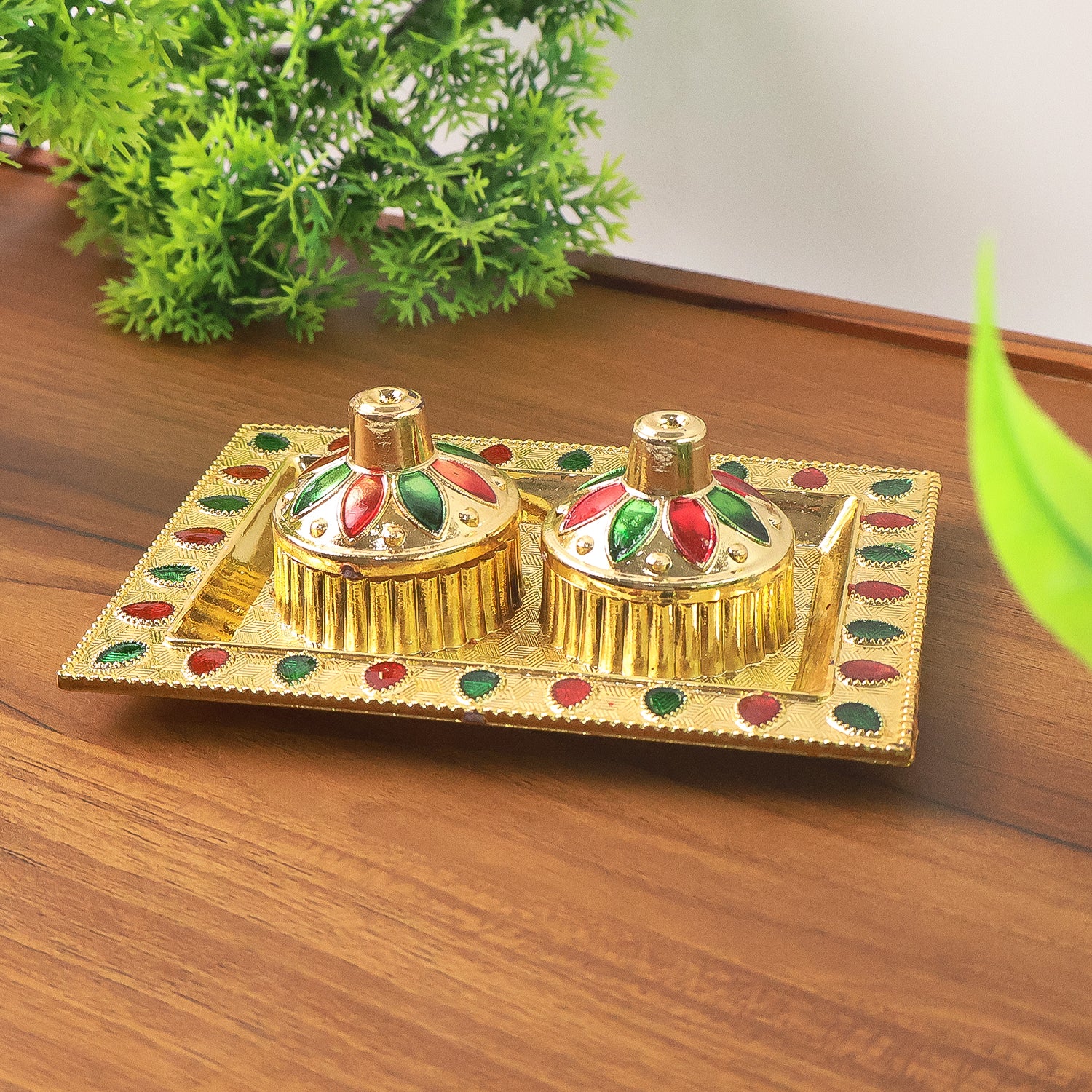 This Stunning Small Decorative Plate Product Serves As A Haldi Kumkum Or A Sindoor / Roli Pot Holder That Is Used As To Welcome The Guests During Wedding, Engagement Or Festival As A Return Gifts Housewarming, Thambulam, Varalakshmi, Indian Items, Or Any Other Occasions.
