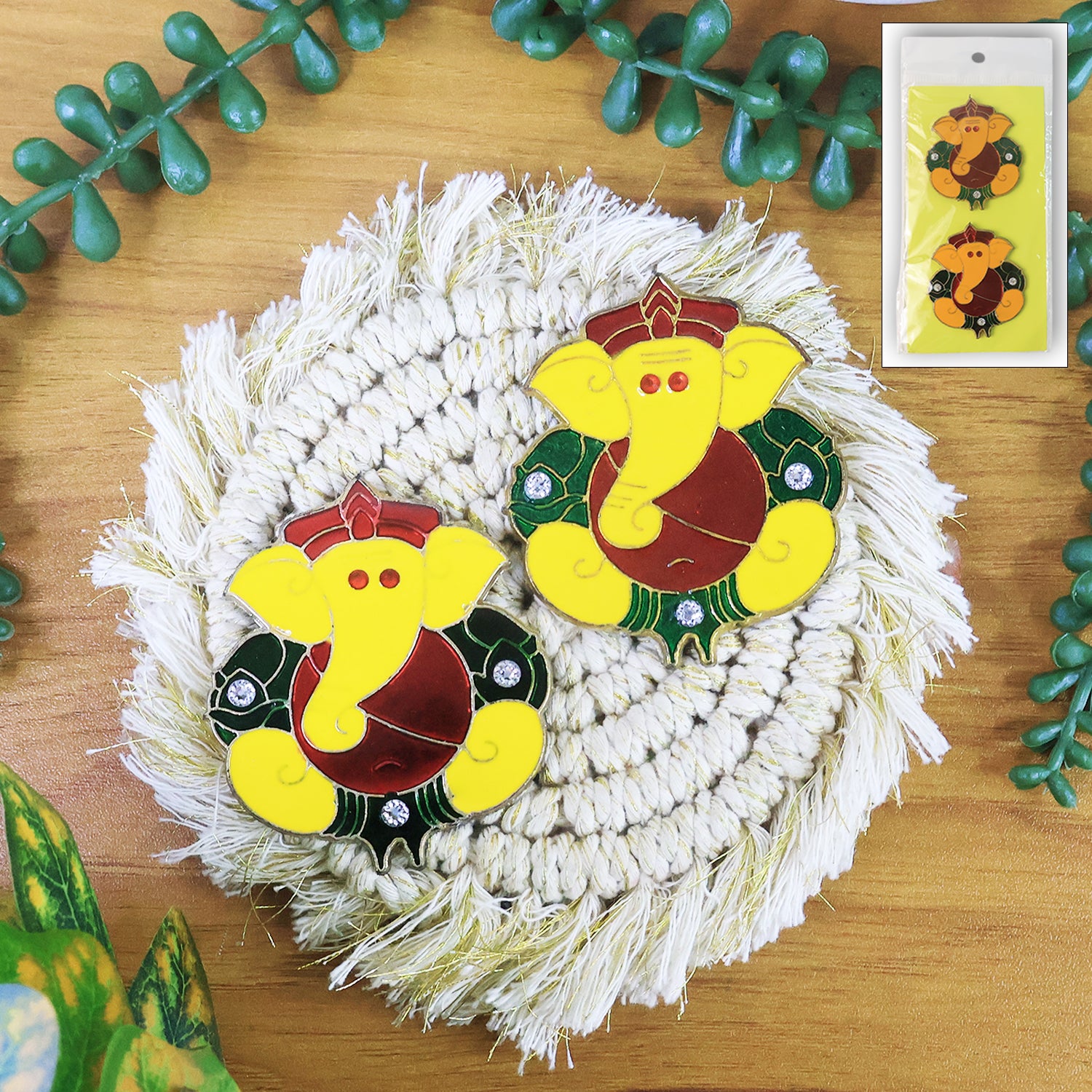 2 Pcs Decorative Lord Ganesha Wall Hanging Stickers – Colorful Ganpati Wall Decor for Home, Office, Temple, Festive Decoration and Gifting